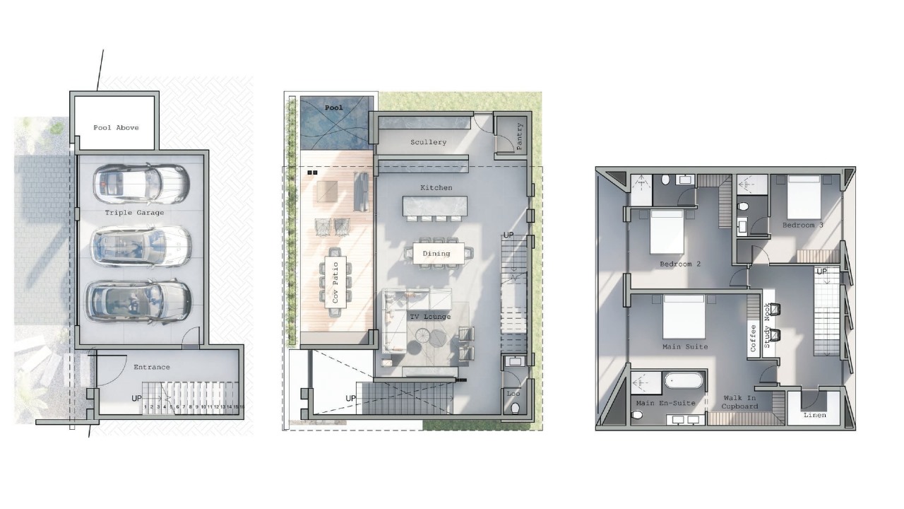 Upstairs, each of the three bedrooms boasts a private ensuite bathroom, ensuring ultimate comfort and privacy. Whether you're seeking a relaxing escape or a fun-filled family vacation, these luxurious villas provide the perfect haven for creating unforgettable memories.